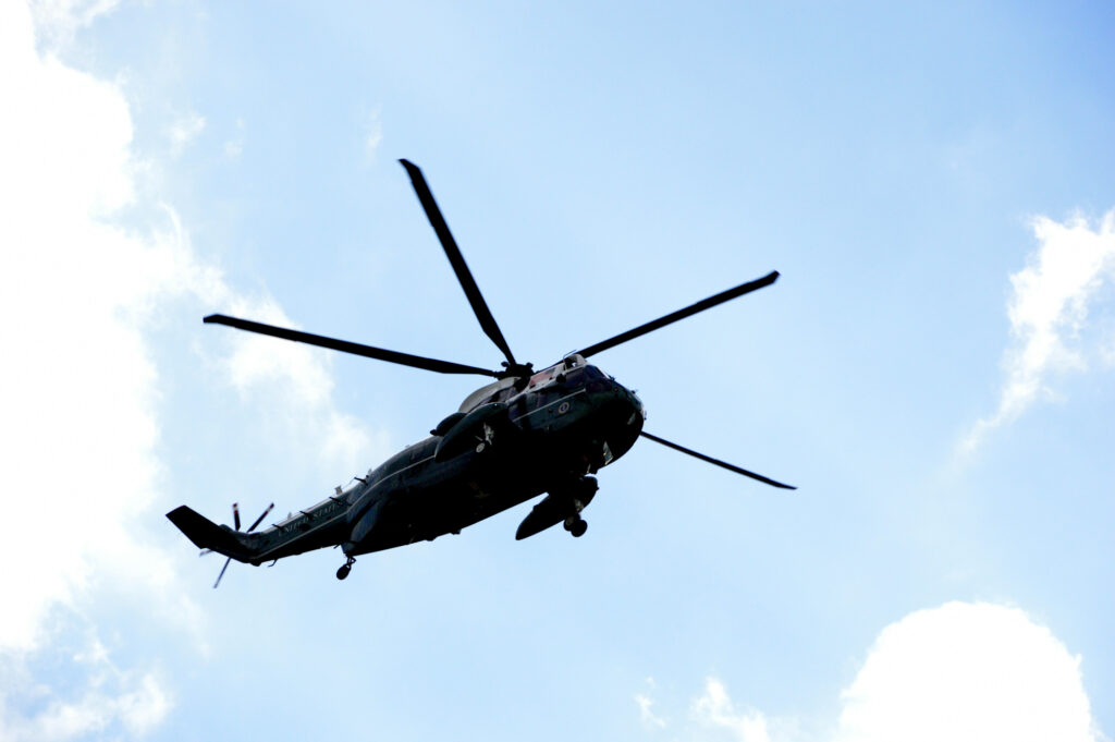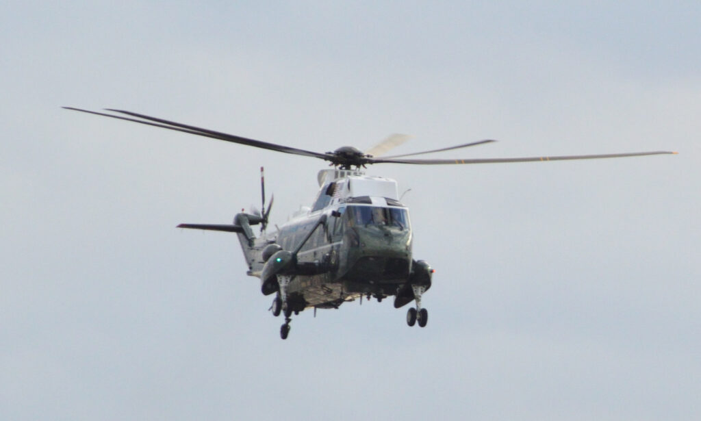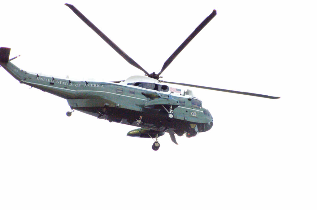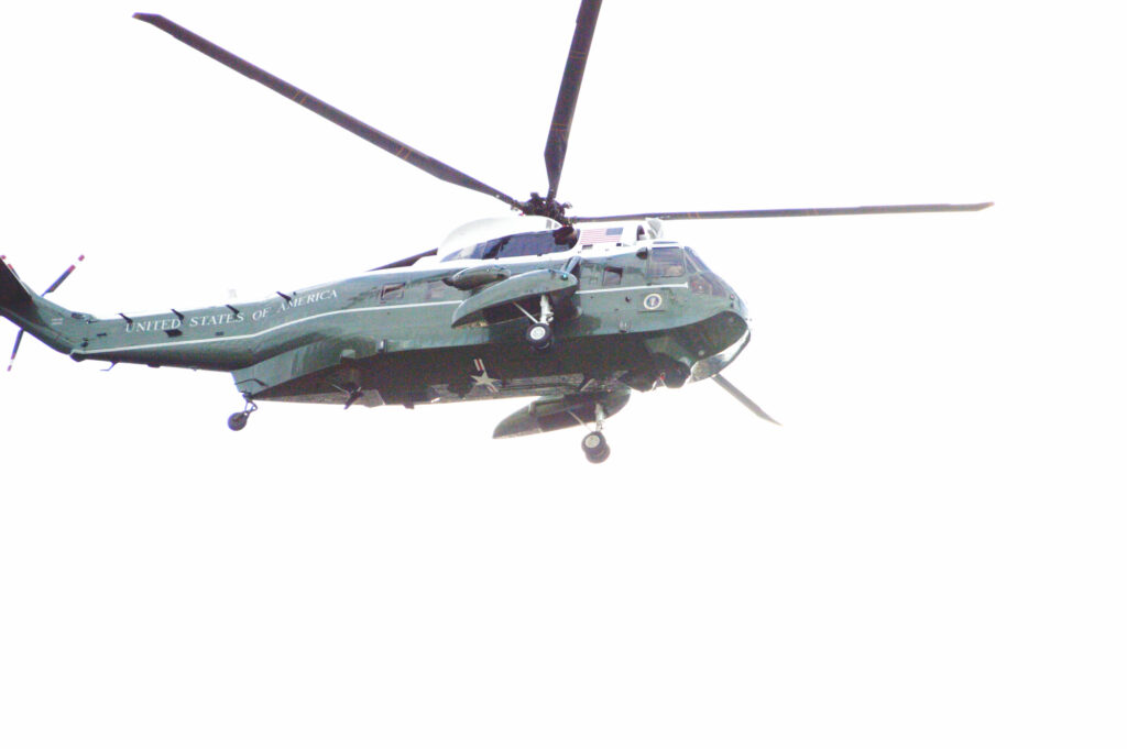 横須賀米軍基地空母に行く為 日米首脳が乗った大統領専用ヘリ マリーンワンが六本木より飛び立ちました