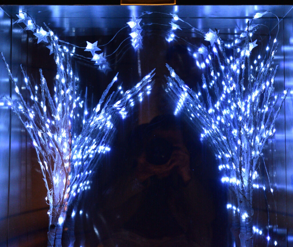 六本木ヒルズ正面入り口広場の木々のライトアップ 色とりどりきれいです