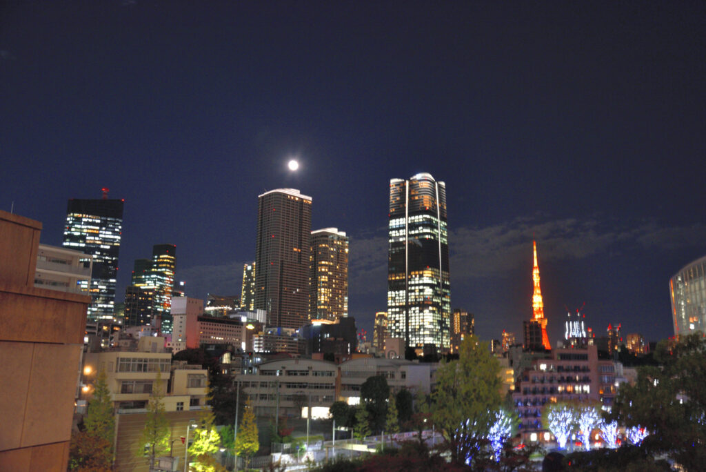 今日はスーパームーン翌日 麻布台ヒルズ 東京タワー等が入った景色 昨日は雲が出ていて見えなかったが