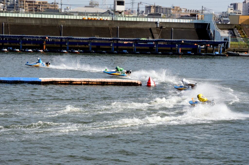 葛西銀塊公園から荒川川岸のサイクルロード北上 江戸川競艇場 選手が練習中