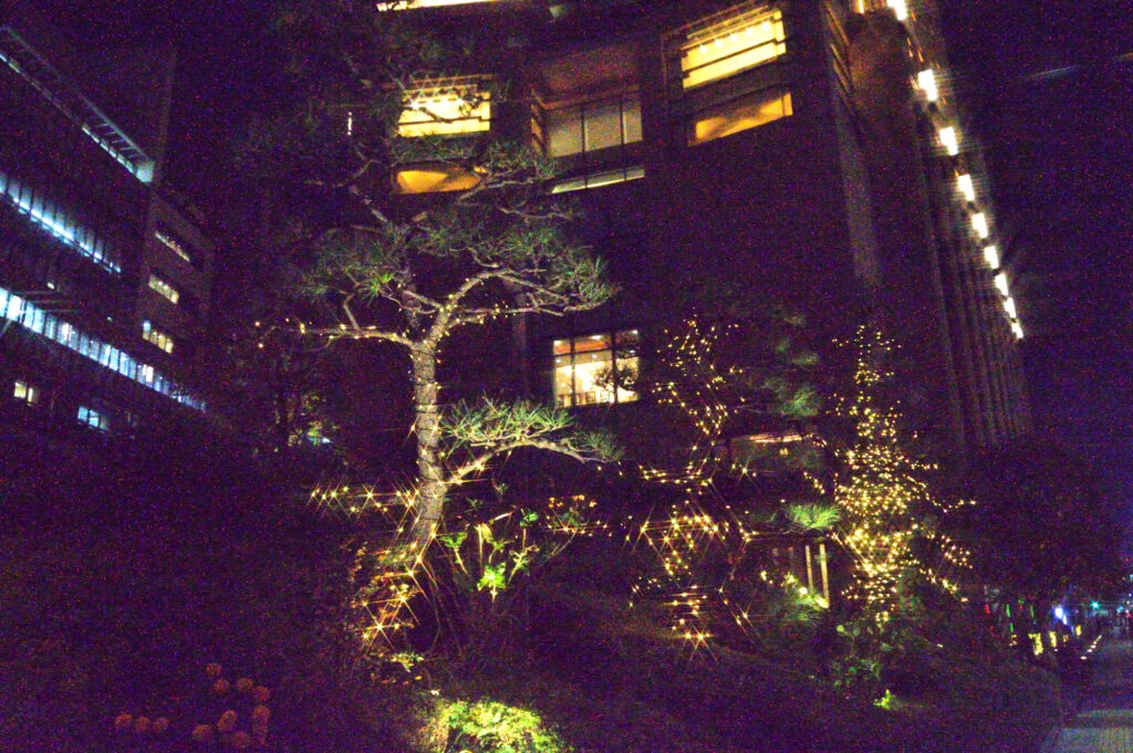 車に気お付けながら六本木から溜池 霞が関官庁街から日比谷公園に 工事中の噴水池を過ぎると最初に目に入るのが帝国ホテルのイルミネーション