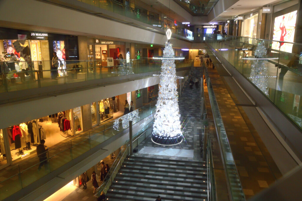 表参道の店舗 イルミネーション クリスマスツリー