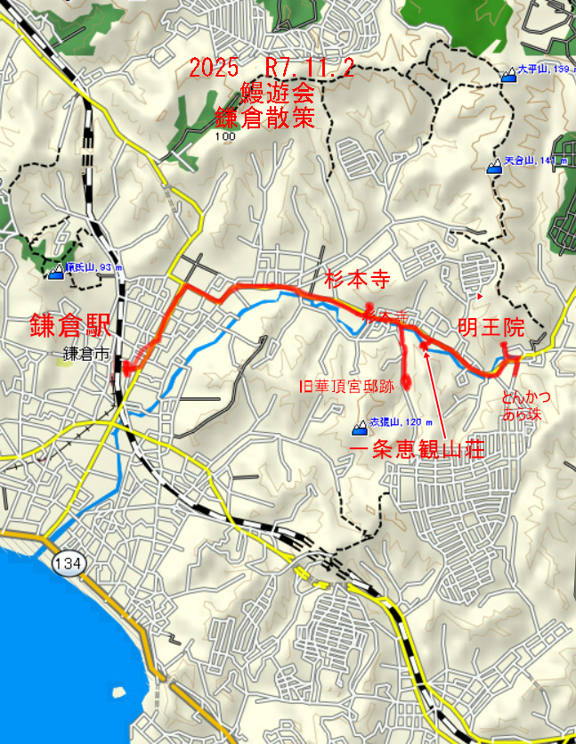 月に一度仲間で集まり地域での食事と散歩 鎌倉に詳しい人が人がいかない所をバスと散歩