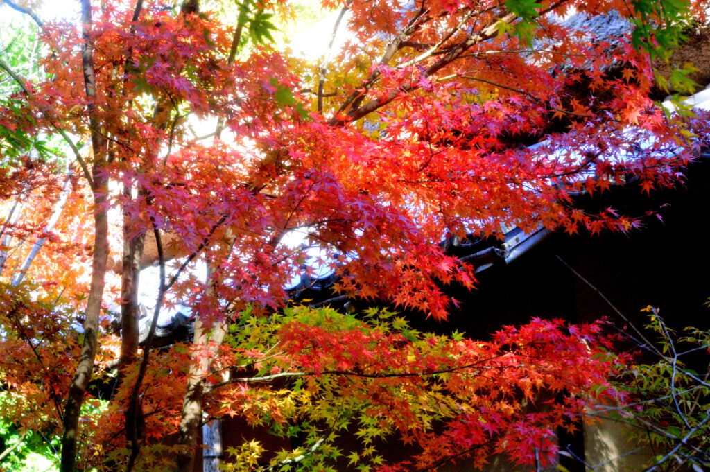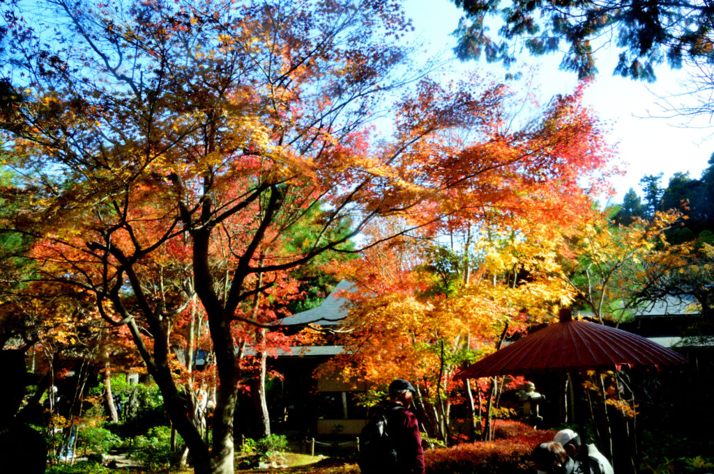一条恵観山荘 摂関家の一条昭良(1605-1672年)が、17世紀中期に京都西賀茂に造営した広大な山荘の離れを、昭和34年に茶道宗徧流不審庵の茶室・止観亭として移築したもので、現在は財団法人が管理している。一条昭良は後陽成天皇の第九皇子として生まれ、一条家の養子となって関白・摂政を歴任し、後に出家して恵観と号した。山荘は、次男・冬基が起こした醍醐家の別邸として受け継がれた。渓谷沿いに造られた庭園に立つ茅葺きの山荘は、国の重要文化財に指定されている