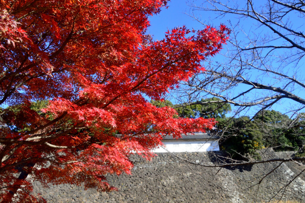 12月7日まで秋の皇居 通り抜け 今日は天気も良く温かい 平日 青空 条件は最高 奥さんと散歩 坂下門から二重の持ち物検査を受けて入場