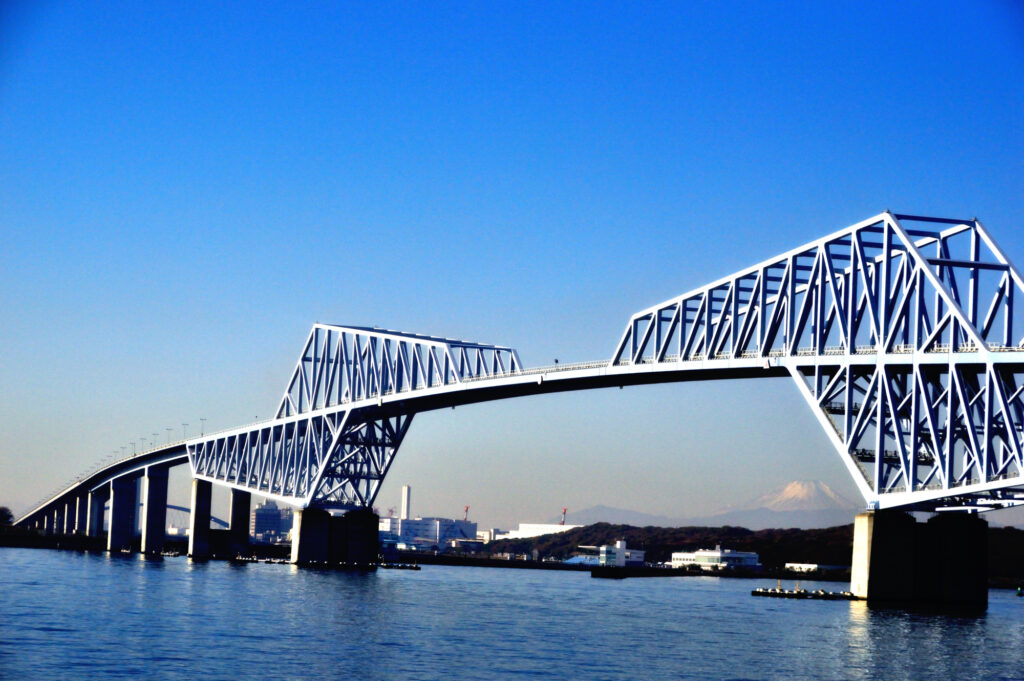 東京ゲートブリッジを渡り若洲海浜公園を周回また東京ゲートブリッジを渡る 遠くに富士山が見える