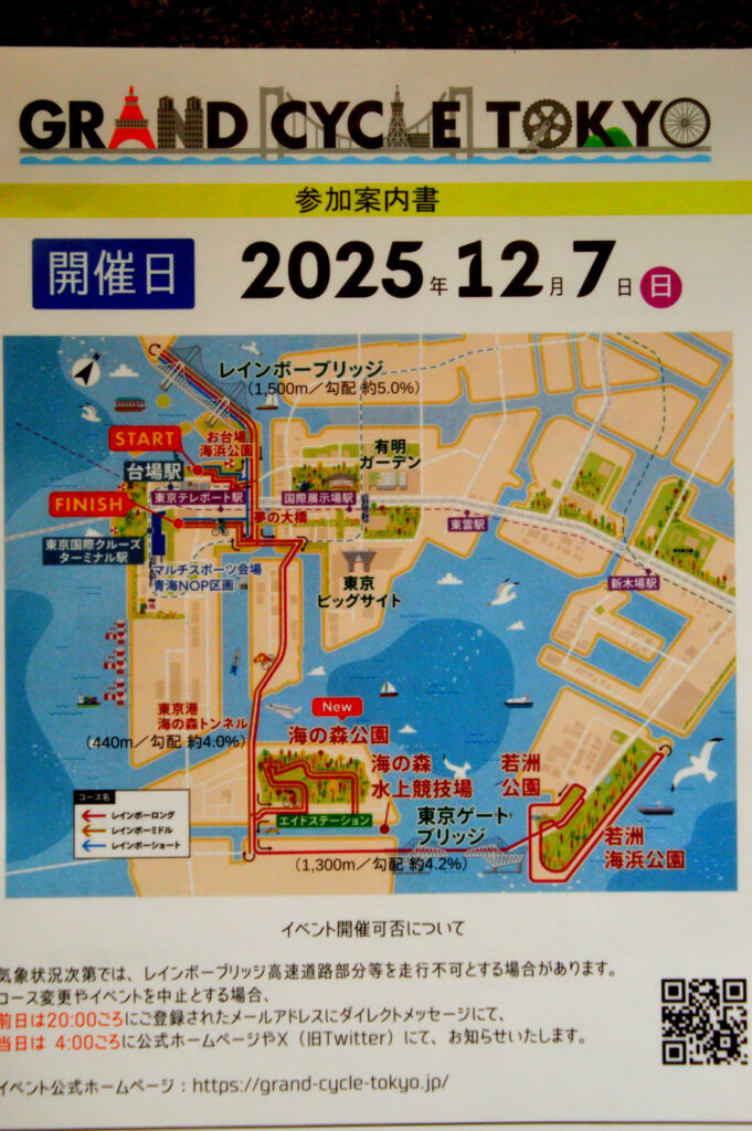 今年も参加しました 普段 車以外走行できないレインボーブリッジ 東京ゲートブリッジを自転車でサイクリング 昨年は前日に自転車を預けられたが 今年はなし 7:10迄が集合時間なので 早朝 5:30自宅出発 集合場所が近くなると いろいろな場所から集合地点に向かう自転車が多くなる