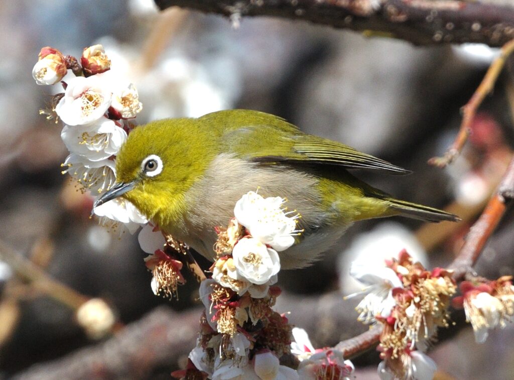 晴 青空 青山墓地 白梅は満開 紅梅は咲き始め 散歩がてらぶらぶらと