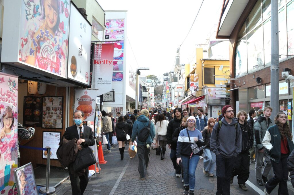 午後から 夫婦で予定通り歩いて明治神宮を最短の距離と思い描いた道を歩く 竹下通りを抜けて原宿駅から明治神宮に行く 竹下通りをぬけるのは何十年ぶり ここもインバウンド観光客が多いとは驚いた お店も独自色?