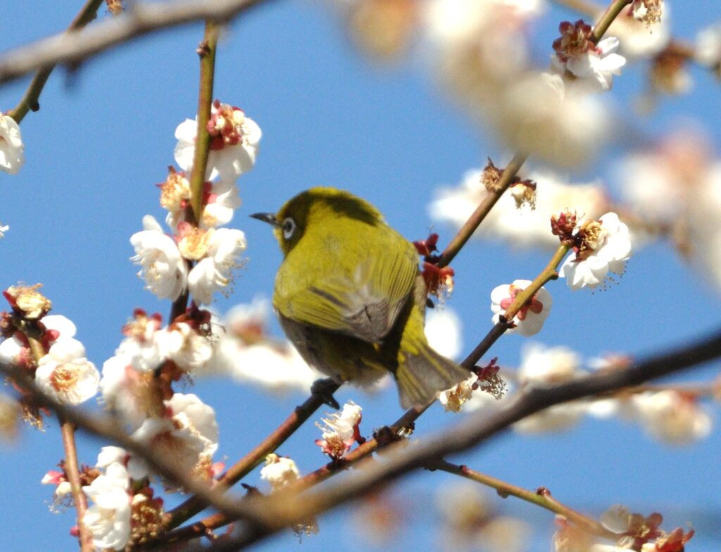 青山墓地 紅梅が」咲き始めた