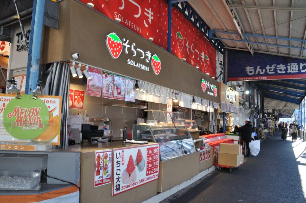 各お店は閉店 シャッターが下りているが飲食店はまだ開いていた この人だかりが卵焼き 丸武の前