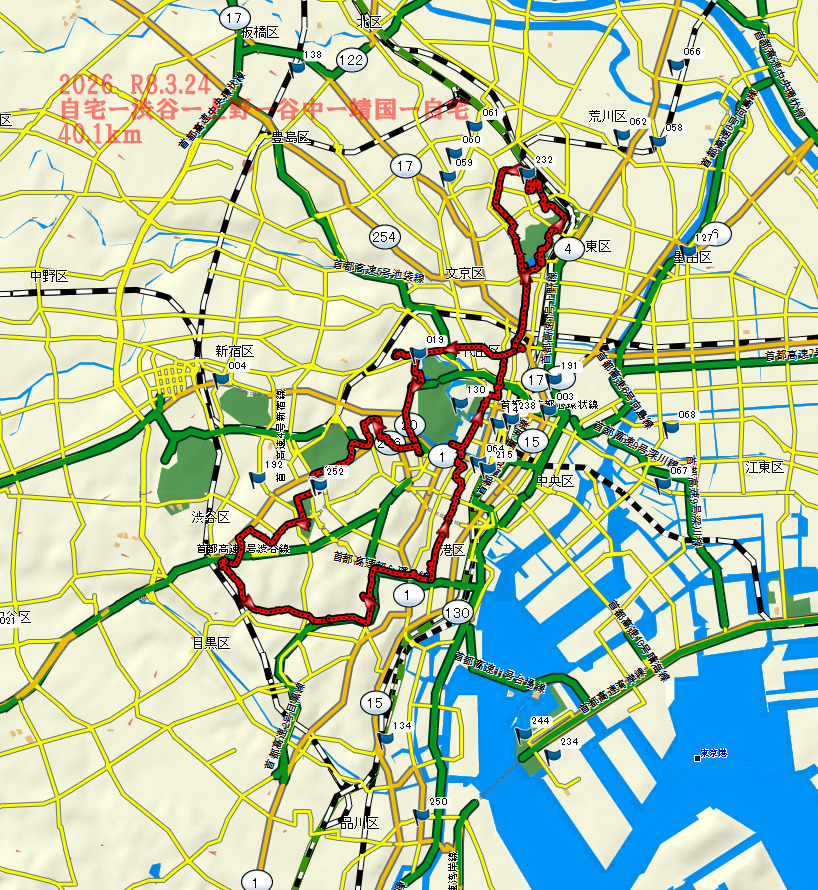 東京桜開花宣言 満開の時期は3/25-以降と思われるが,あいにく天気予報 雨 曇り 太陽が出るのが3/27.29 今日3/24は終日青空 自転車で都内 桜ツアー