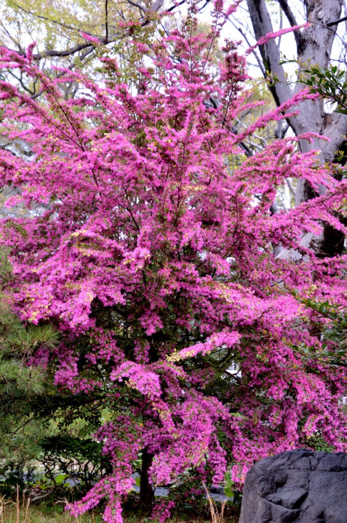築地場外に行く途中 高速道路に掛かる 菜女橋 袂 陽光かな ピンクが鮮やか